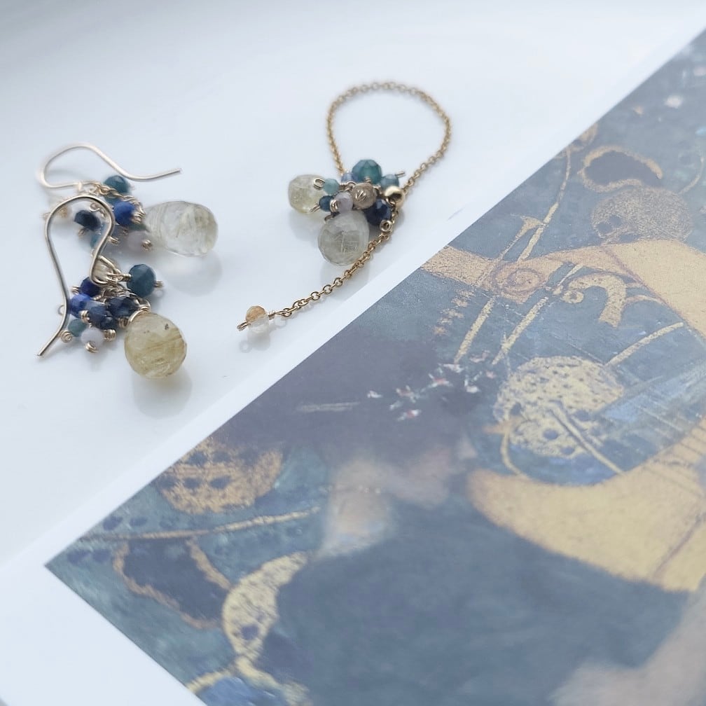 クリムトの《音楽》をモチーフにした、ルチルクォーツのピアスです。
