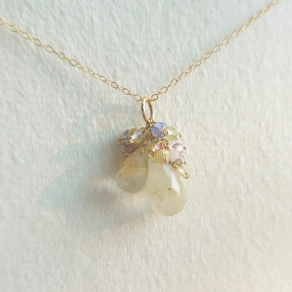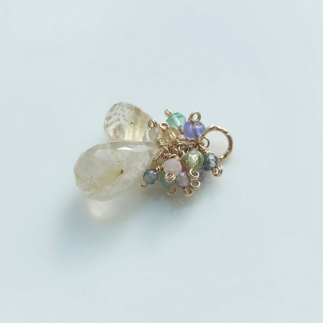 【14kgf】ルチルクォーツと7種の天然石のチャーム