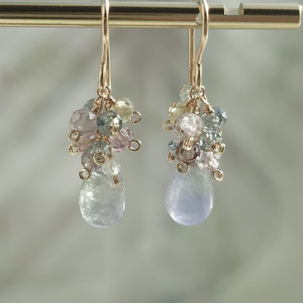 バイカラータンザナイトとスピネルのピアス