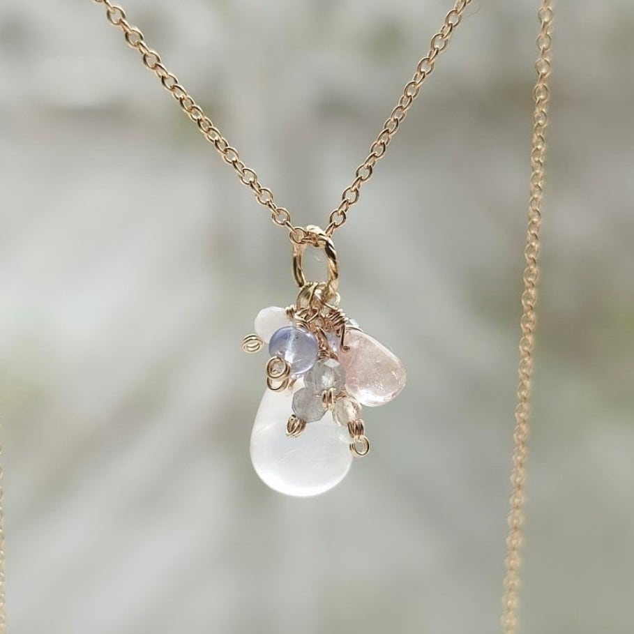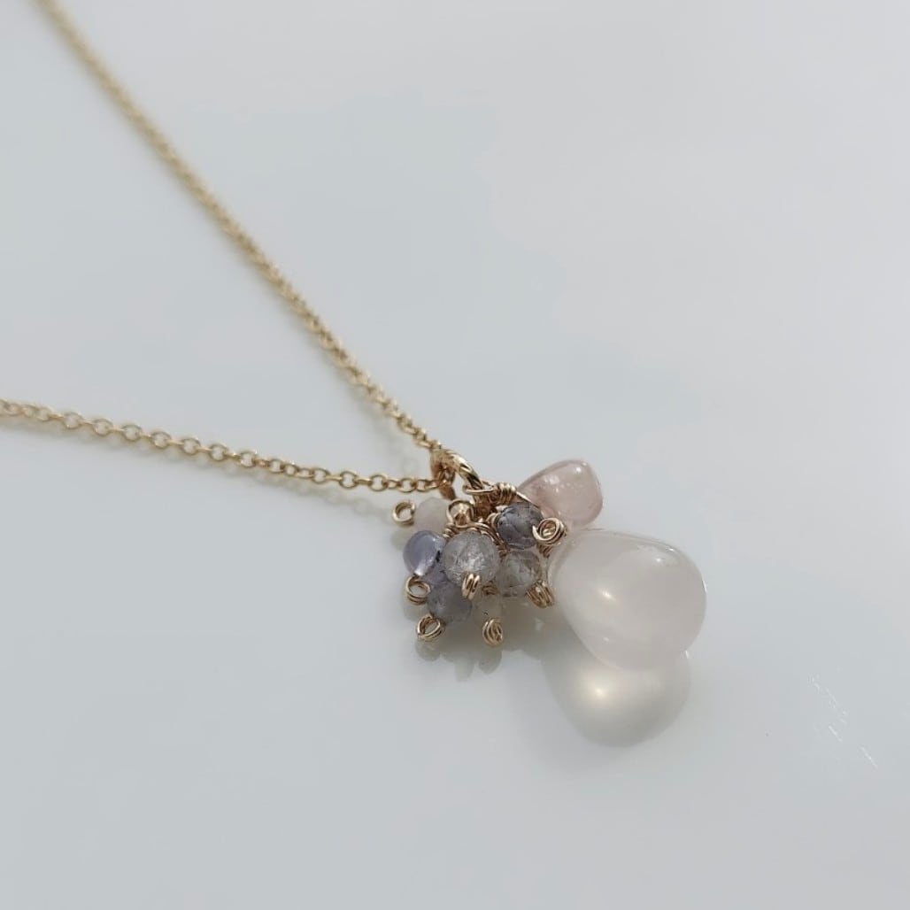ころんとやさしいローズクォーツに、ピンクサファイア、タンザナイト、を添えて。