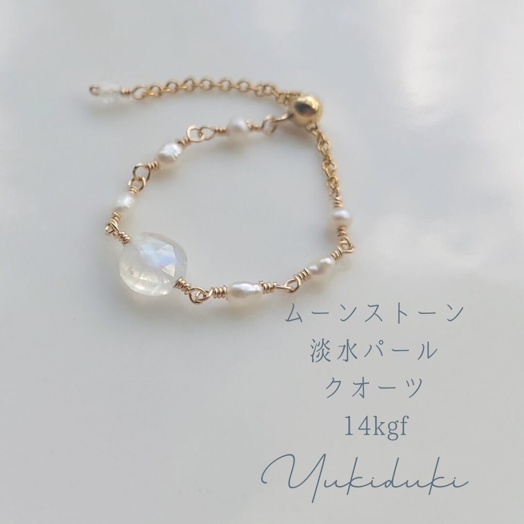 【14kgf】ブルームーンストーンと淡水パールのチェーンリング