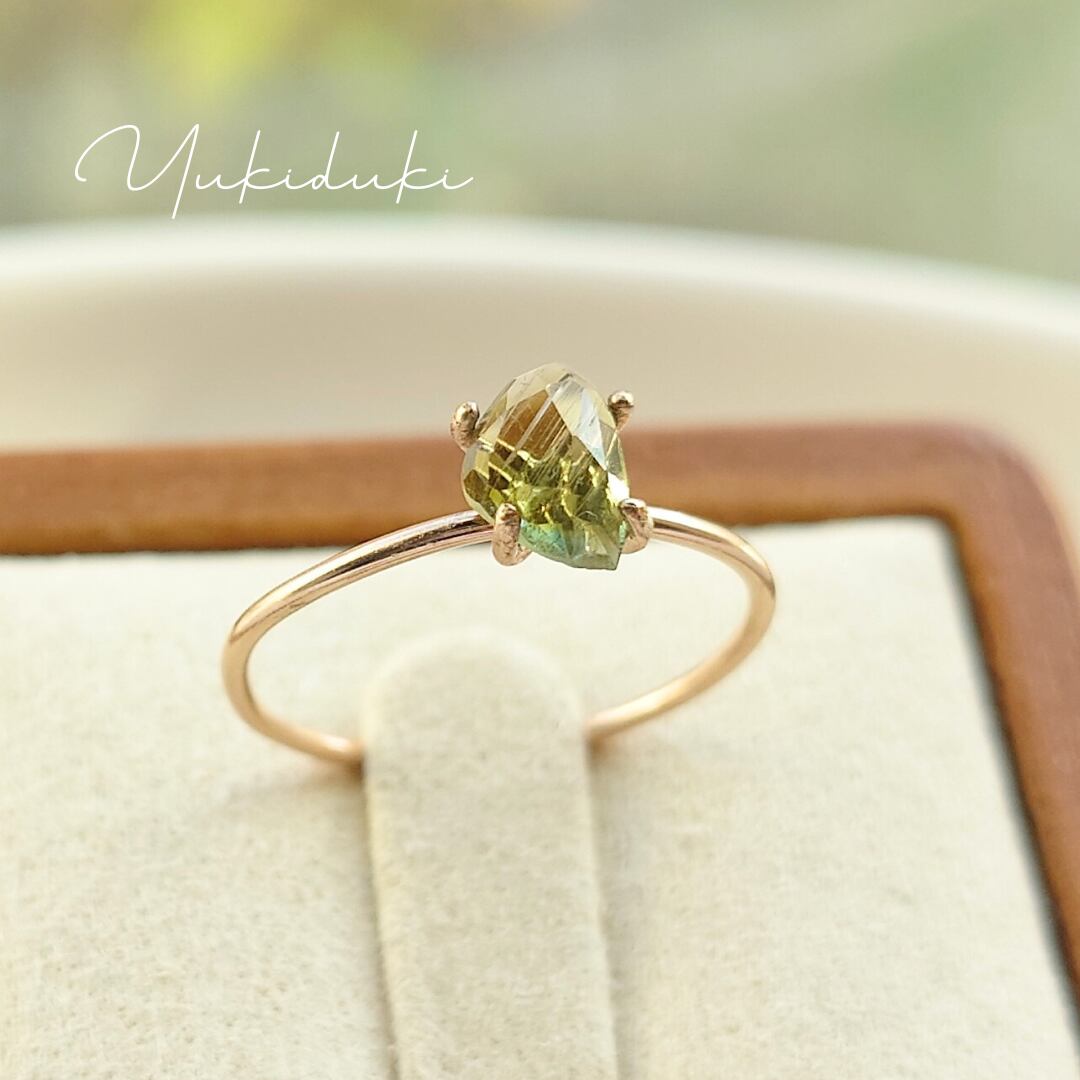 ランダムなカットが可愛い、深いイエローとグリーンのバイカラートルマリン。