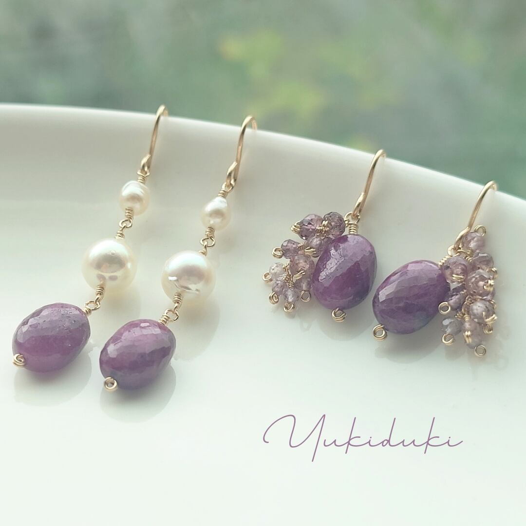 【14Kgf】非加熱ルビーとマラヤガーネットのピアス